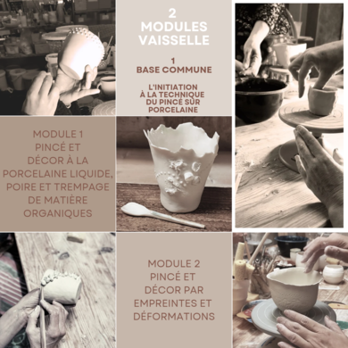 Venez créer vos prores tasses, bols, mugs en porcelaine suivant la technique du pincé.